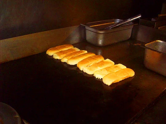 Hot dog buns are lined up like pretty maids in a row on the grill. They too are simmering in butter. So far, so good!