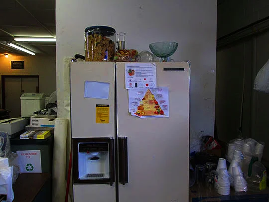 When Nixon died in 1994, I taped this article from Rolling Stone about the obituary that Hunter S. Thompson wrote about the fallen ex-President. Part of the obit he wrote read: "He was a swine of a man and a jabbering dupe of a president. Nixon was so crooked that he needed servants to help him screw his pants on every morning." Ha! You can read the full obituary here: "He Was A Crook." Thanks to the folks at Trico Copiers for letting me wander around in there and take pictures and have full access to their fridge! We'll see you all tomorrow!