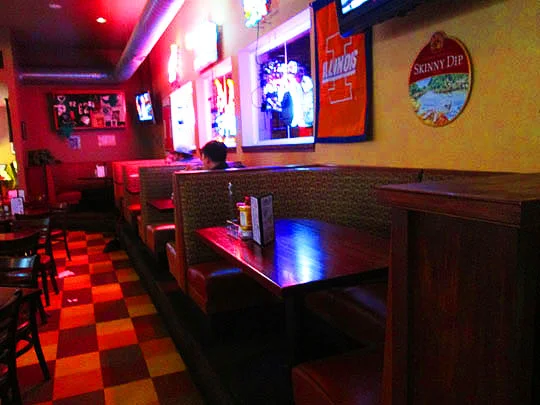 Here’s the spaciouls dining area that’s located behind the bar. Check out the Cheap Trick floor!