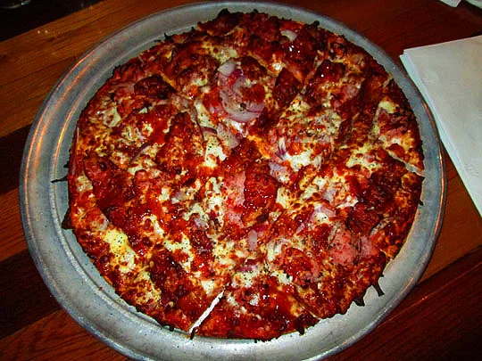 I got the pizza topped with spiced beef, bacon, ham and onion. The spiced beef flavor really comes through and delivers a nice tang and bite to the pie. The crust is thin and has a nice texture and the homemade sauce is quite tasty, all in all, a really delicious pizza pie.