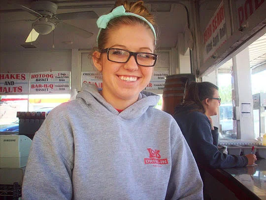 Brad, Hannah and Amy were dining at a table in the back and they told me that they’re regular readers of MBIP, which I always love to hear. And then I found out that Hannah was featured on MBIP a couple of years ago when I stopped in at Lou’s for our Hot Dog Wars segment back in 2013. I had to go back and find her picture from back then... (P.S. Hi Lou! Ha ha ha!)