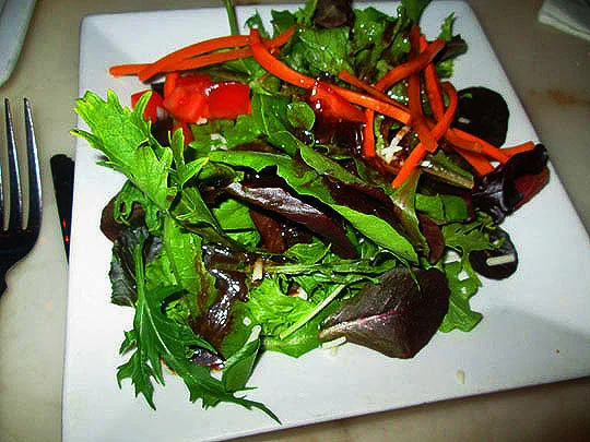 After the appetizer my salad was served up and it was just as tasty as it looks. It was dressed with Balsamic Vinagrette which was sharp and tangy.