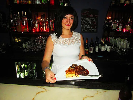 For my main course I got the six ounce filet topped with grilled onions and mushrooms. The filet was cooked perfectly, it was so tender you hardly had to cut it with a knife and it was succulent and tasty. The filet comes with au gratin potatoes and they’re topped with fried haystack onions and it complimented the filet perfectly. My dessert martini was the perfect ending to a wonderful meal at Noir!