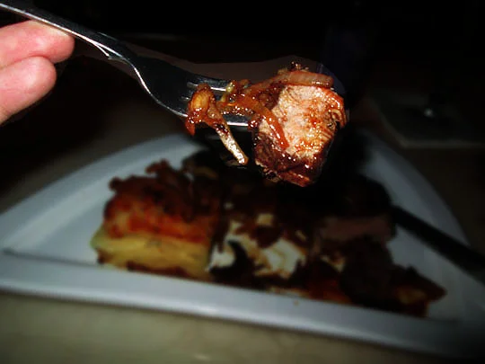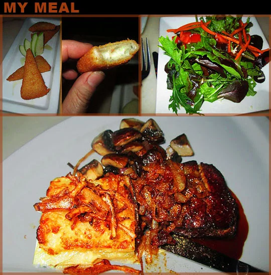 Which is a six ounce filet served with au gratin potatoes. I got the filet topped with caramelized grilled onions and a side of sauteed mushrooms. It looks and smells like a slice of heaven!