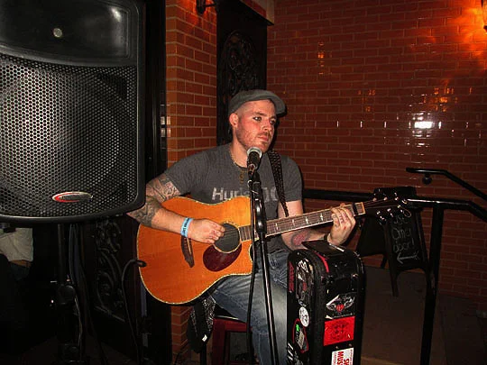 I had enjoyed the music from the patio all night and came out to tell the singer and guitarist, Chase Sieking, who was just ending his set for the evening. After I took his picture I gave him an MBIP card and he told me he’s friends with MBIP pal, Gavra and that she was just telling him about the MBIP blog that afternoon! I love crazy coincidences like this! Chase came back in to the bar with me...