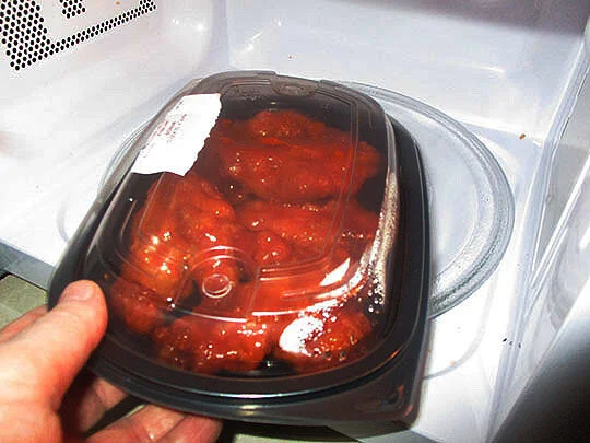 We’ll start off by warming up the chicken wings in the microwave oven.