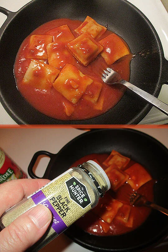 Beef Ravioli: One Half Chef: There was no taste and the slime factor was gross. It was kind of like eating a combination of hot jello with a sinus condition.