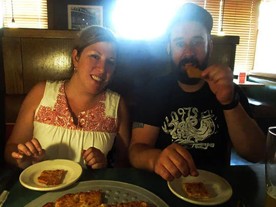 There’s Amber and Joe enjoying the pre-pizza appetizers!