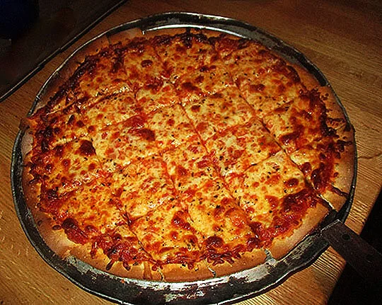 This is really a tasty cheese pizza, the sauce is flavorful, the cheese is rich and the crust is thin and crispy. This is just the way I like my pizza.