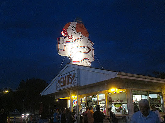It’s one of Peoria’s best known landmarks due to the somewhat (in my opinion) creepy clown that sits on top of the roof. That clown has been there since the owners, Elmer and Marge Harms thought it might be a way to bring attention to the building. And it worked. If you live in or around Peoria, you’ve driven by the Emo’s clown, many times.