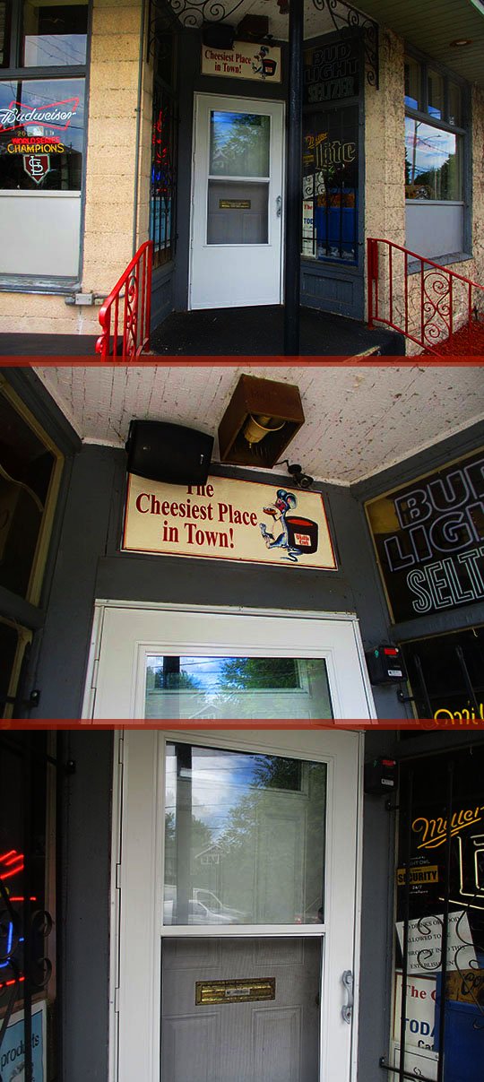 Above the door is a reminder that this is The Cheesiest Place in town, a reference to the famous Castle’s Patio Inn homemade cheese spread.