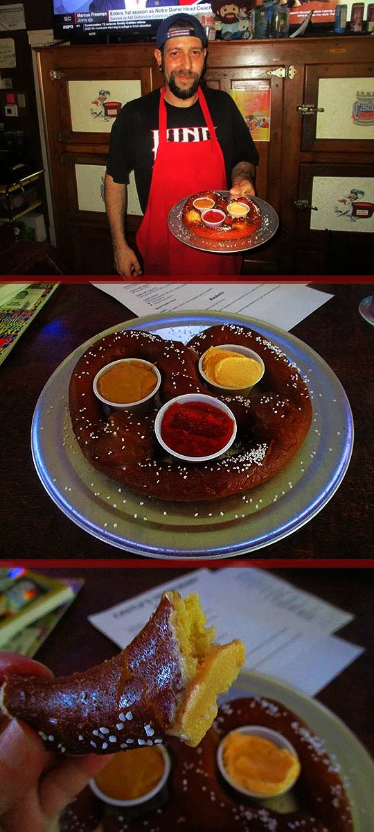 Here’s Kevin, the Executive Chef here at Castle’s Patio Inn delivering the beginning of today’s lunch, The Jumbo Pretzel!