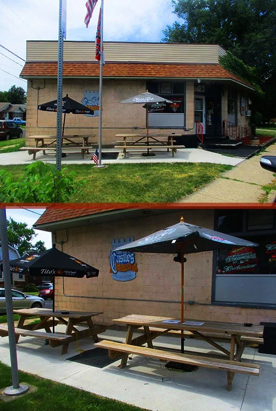 The joke for decades was that Ray’s and then Castle’s Patio Inn didn’t have a patio and now they do and it has two picnic styled tables with umbrellas. Nice!