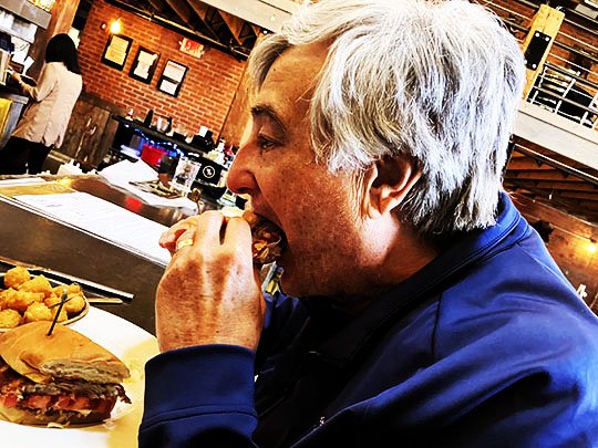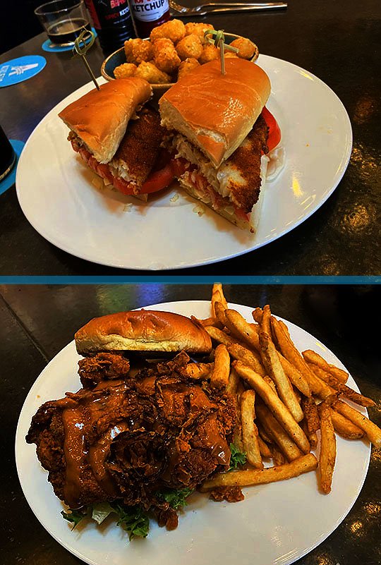 There’s Michael chomping into his Fish Po Boy and he said it was a very tasty and satisfying sandwich.