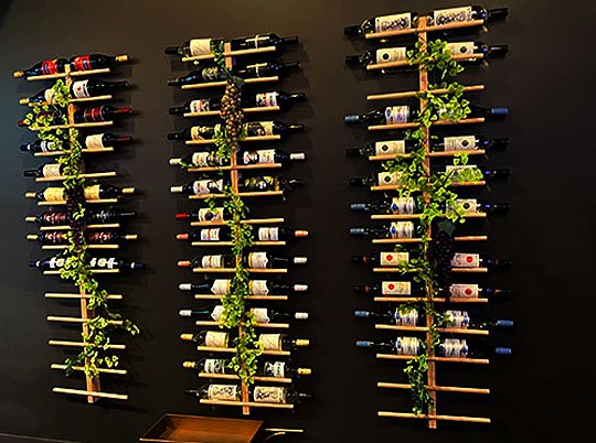 Just a few of the bottles that are featured on the impressive wall of wine in here!