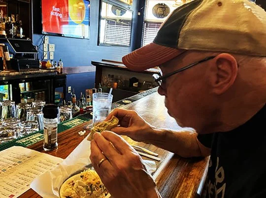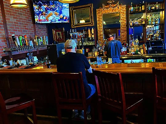 Here we are at tonight’s destination, The Bellevue Tap. I love all the lights on the outside of the bar and Jim/Vern looks absolutely electric leading the way inside!