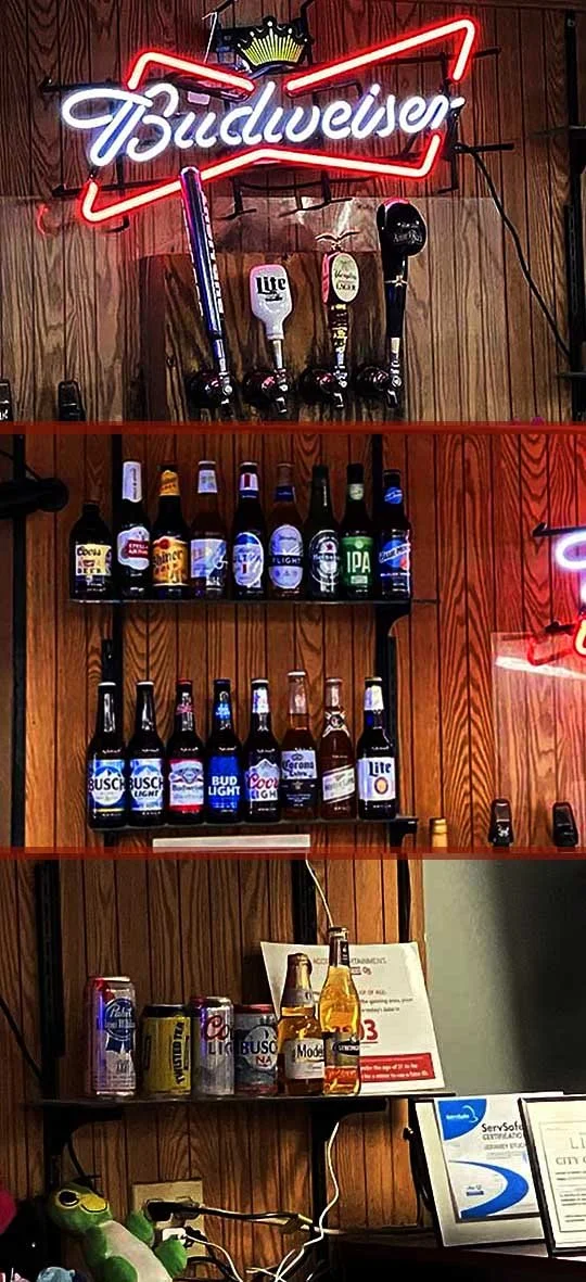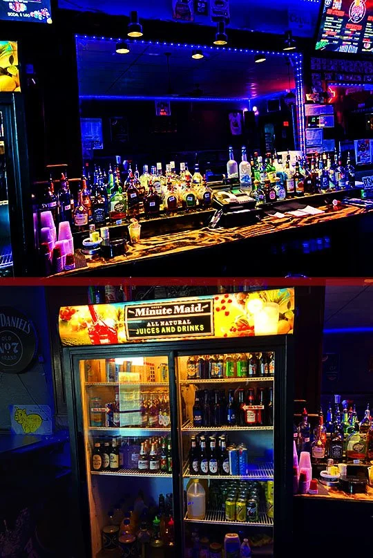 As you can see from the inventory of these three coolers behind the bar, they are very well stocked for a thirsty crowd in here!