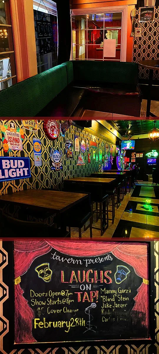There’s a comfortable couch up front to relax in, tables line the wall opposite the bar and there’s a comedy show happening here next Saturday.