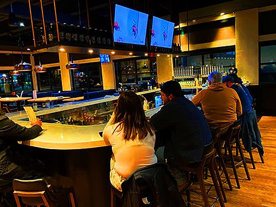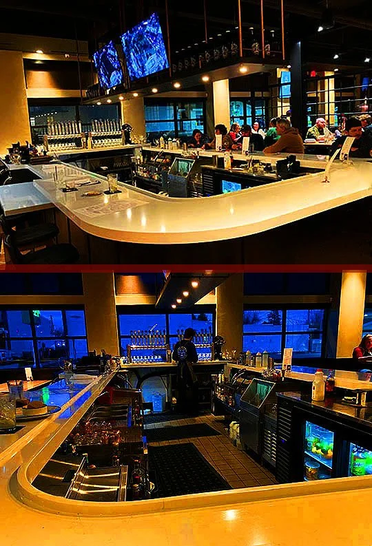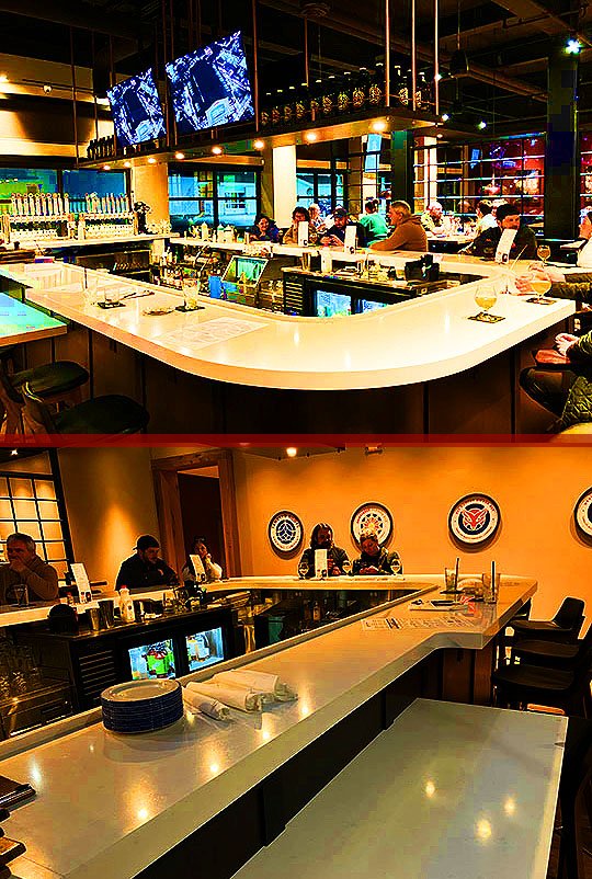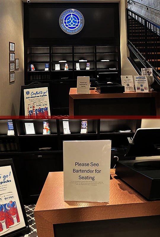 There’s a sign at the front desk and it says, “Please See Bartender for Seating.” That’s perfect because we’re going to be seated at the bar!