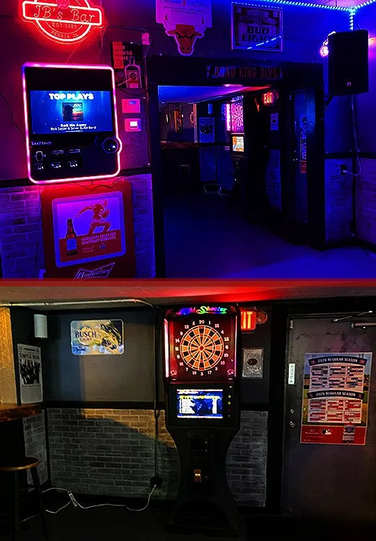 There’s a lone dart board standing tall in the corner over here.