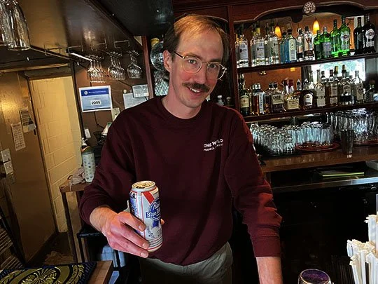 Gene was the friendly bartender on duty and here he is serving me up a Pabst Blue Ribbon tallboy. Cheers!