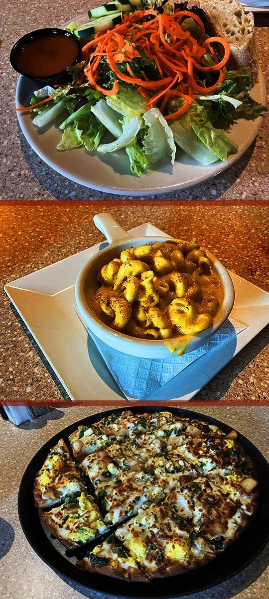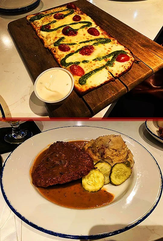 Here’s our main courses: Amber and Joe got the Margherita Flatbread and I got the Steak Schnitzel. Everything looks absolutely delicious!