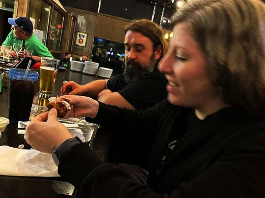 There’s Amber and Joe digging into the wings. They loved them!