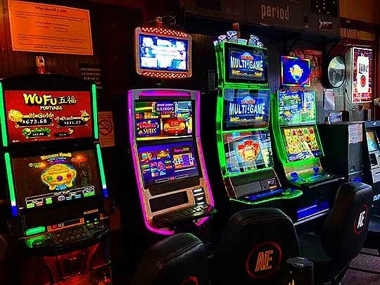 There’s a row of gaming machines along the wall right next to the front door in here.