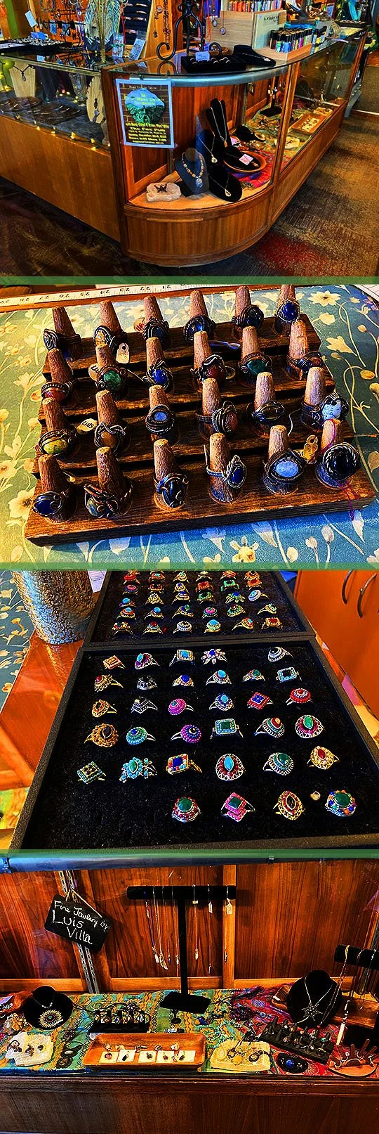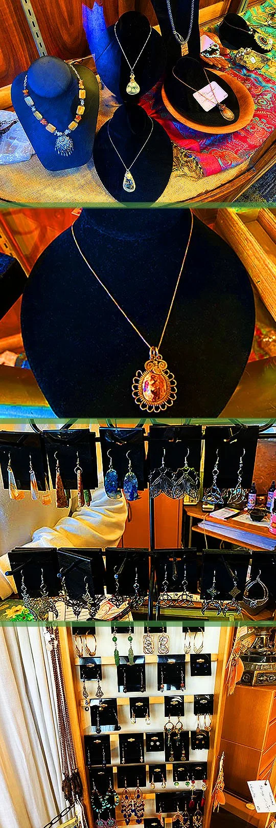 Check out all the jewelry in here. Moon Dancer sells a lot of locally produced jewelry including Luis Villa and other fine artists in and around the Central Illinois area.
