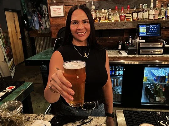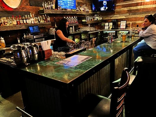 The bar is somewhat full, but there’s a couple empty seats over there, let’s go snag one and get settled in here.