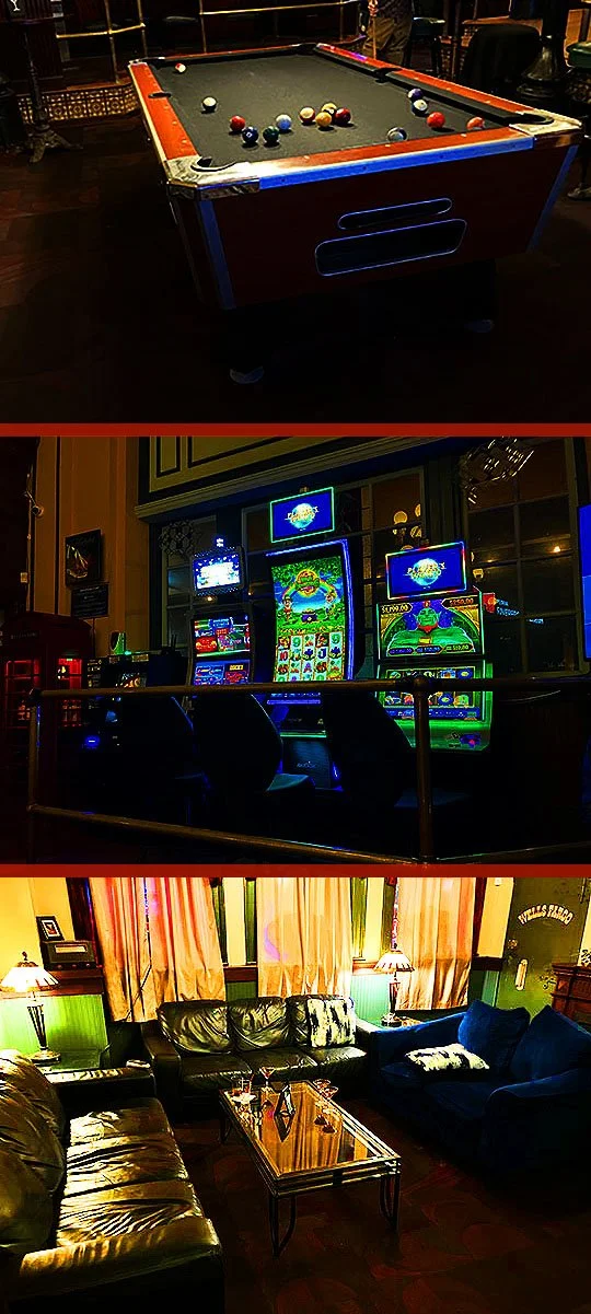 There’s a pool table and gaming machines in front of the bar and a nice room to relax in at the very front of the room.