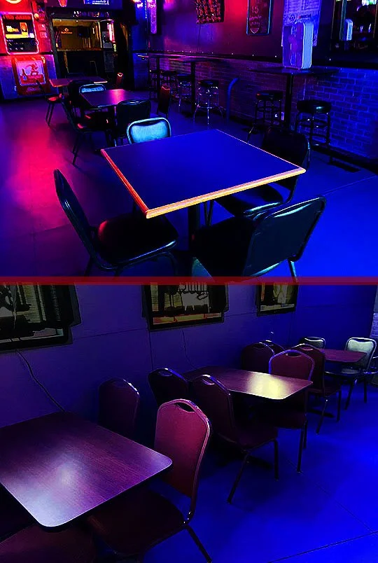 There’s dining tables and chairs up front in the dining room and there’s more directly behind the bar.