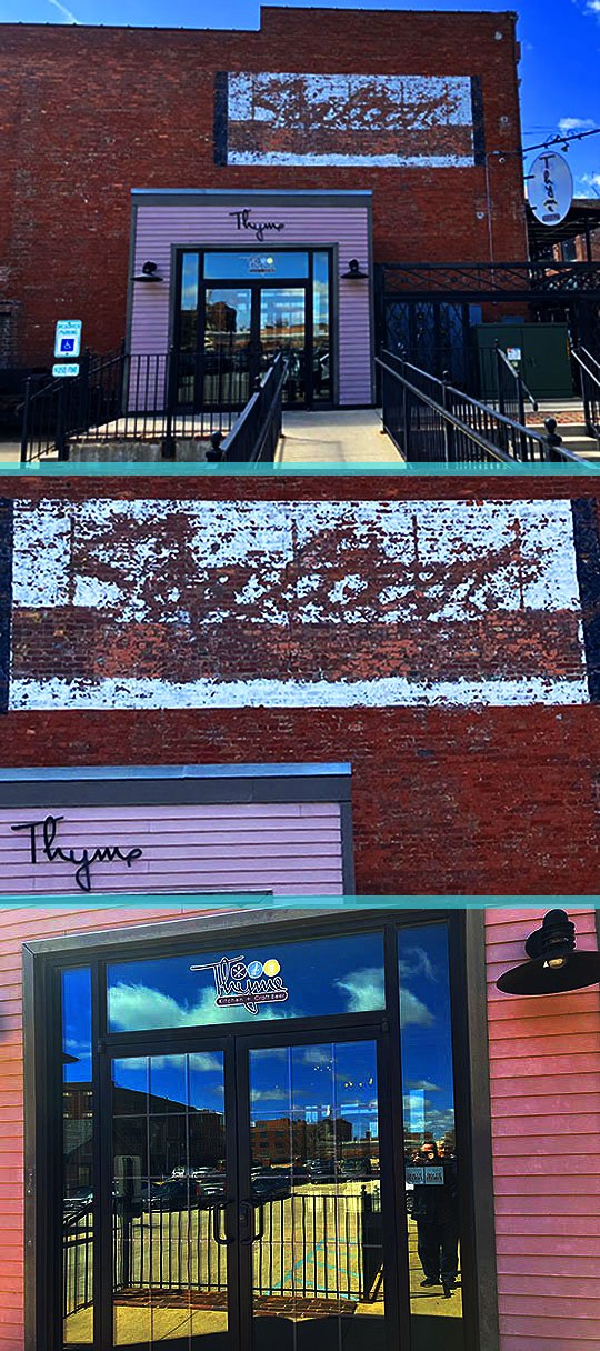 Here we are at Thyme in downtown Peoria in the old Sealtest building. I love that they kept the old Sealtest logo alive on the building.