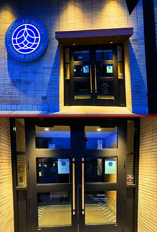 Here we are at Tangled Roots Brewing Company in Washington, Illinois. Let’s go through the double doors and see what’s going on inside of there.