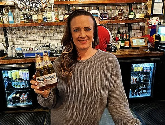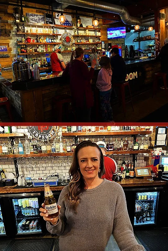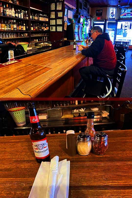 Kate was the pretty and friendly bartender on duty. Here she is serving me up an ice-cold bottle of Budweiser and I love it when this happens!