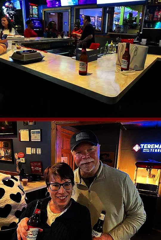 Okay, the dinner portion of the evening is over, and it’s time to head to the Tiny Tavern in the back and begin our 36th visit to a bar!