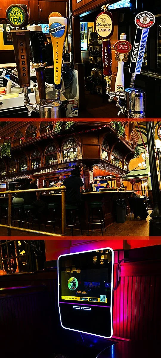 There’s the six beers on tap, a shot of the other side of this mammoth wooden bar and a state-of-the-art jukebox on the wall.