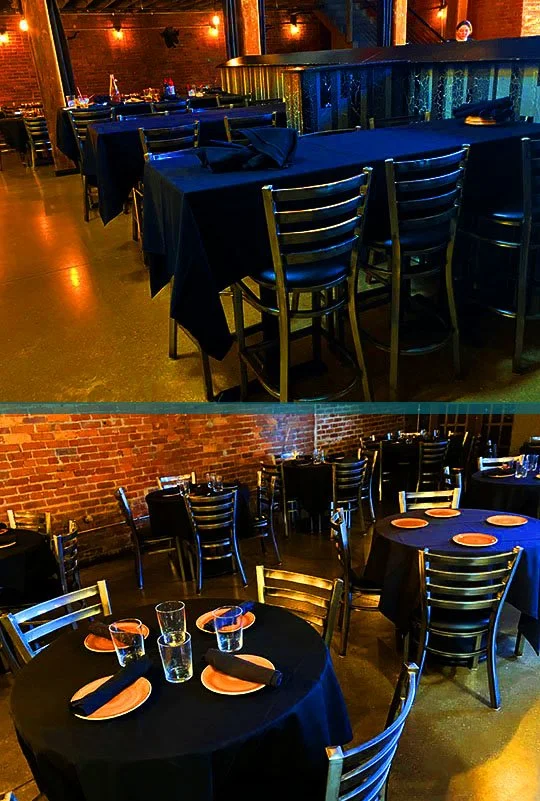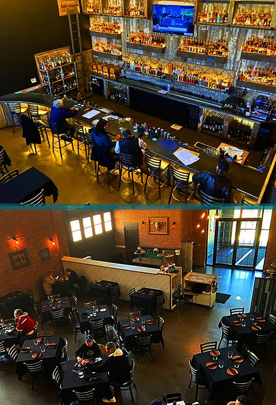While I was upstairs, I took an aerial shot of the bar and the main dining room. Hello down there!