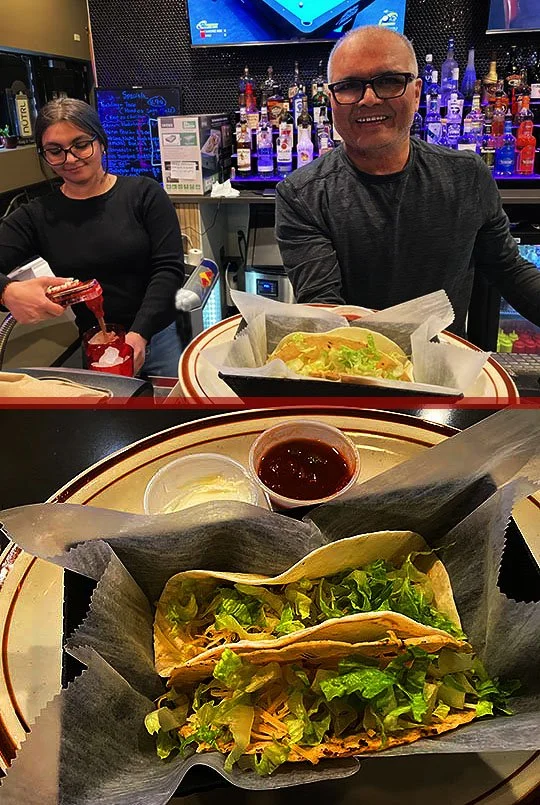 There’s the owners of Go Vino, behind the bar, Navin and Hiral and Navin’s wife and Hiral’s mom, Padma is also an owner.