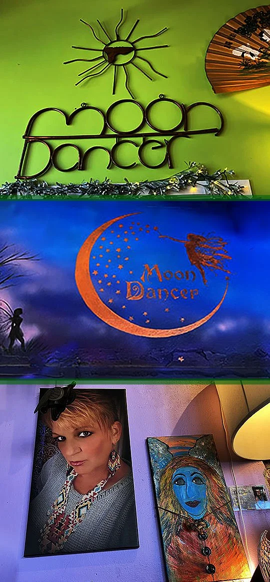 Julie is the owner in here and while she wasn’t here when I stopped in, here’s her photo on the wall next to a painting of Deb Block, who was a part of Moon Dancer for years until she passed away a while ago. Julie happened upon a necklace of Deb’s at a flea market and it hangs on this portrait of her and her spirit lives on in here at Moon Dancer!