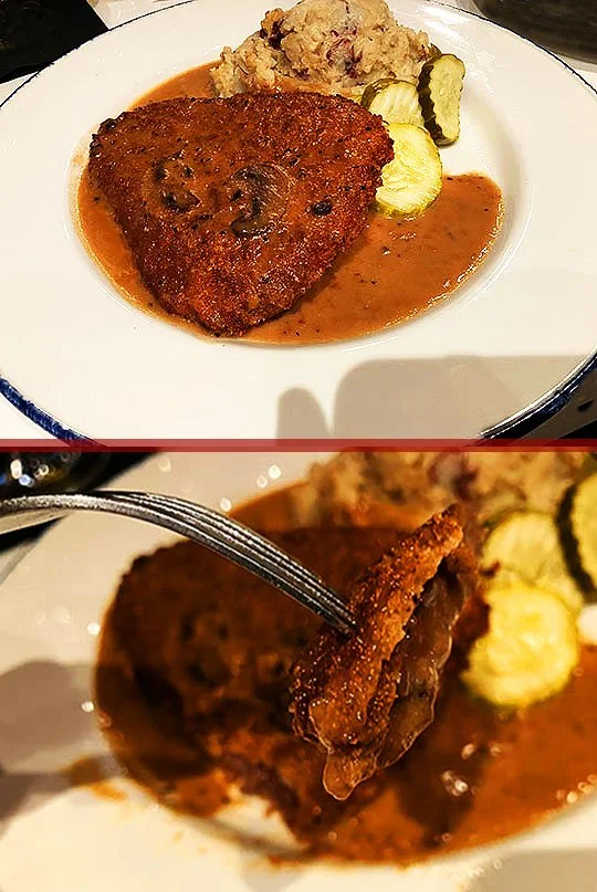 Joe and Amber loved the Margherita Flatbread and this Steak Schnitzel was a tasty treat!