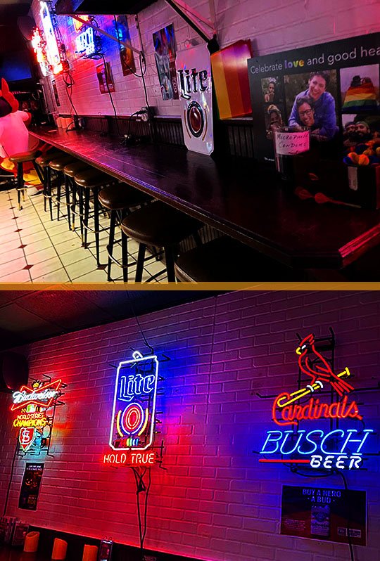 I love the neon signs and there’s yet another sign of the fact that this is a St. Louis Cardinals bar!