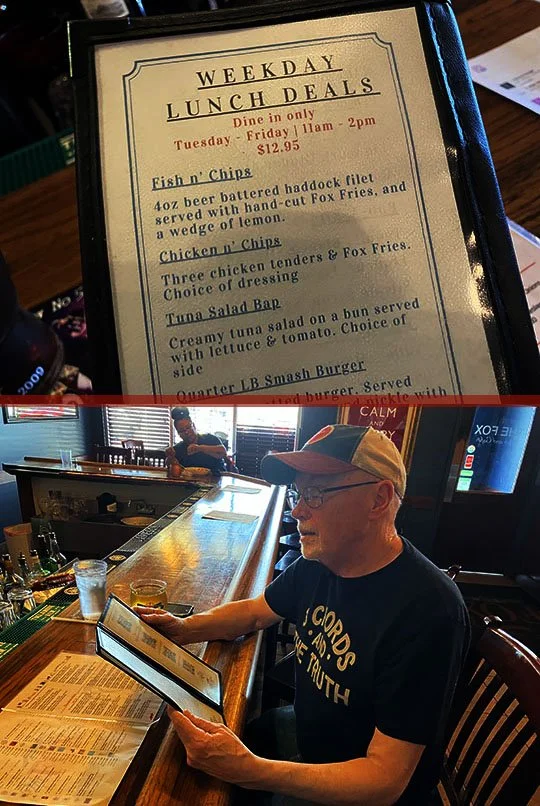 Tanner was the friendly bartender on duty and here he is delivering me a beer and then he took our dinner order. I love it when things fall into place like this!