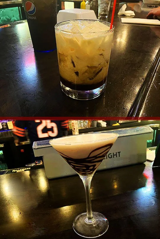 For dessert, Joe got a White Russian and I had not one, but two chocolate martini’s! Amber was driving, so she watched Joe and I booze it up.
