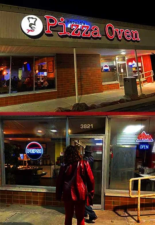 Here we are at Herold’s Pizza Oven. We’ll follow these two inside and see what’s happening in there on this Saturday evening.