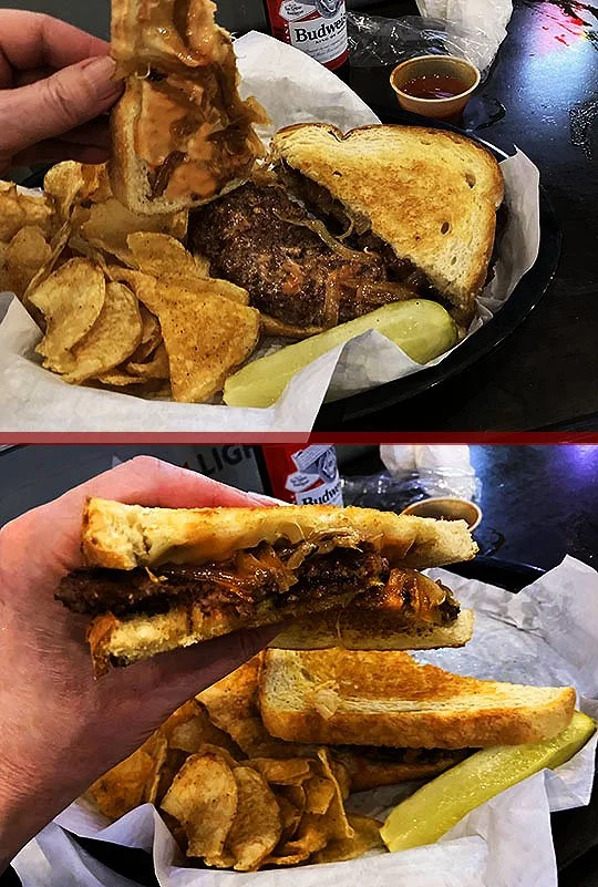 I got the Frisco Melt which is a six ounce burger on sourdough bread topped with their special Frisco sauce, fried onions and American and Swiss cheese.