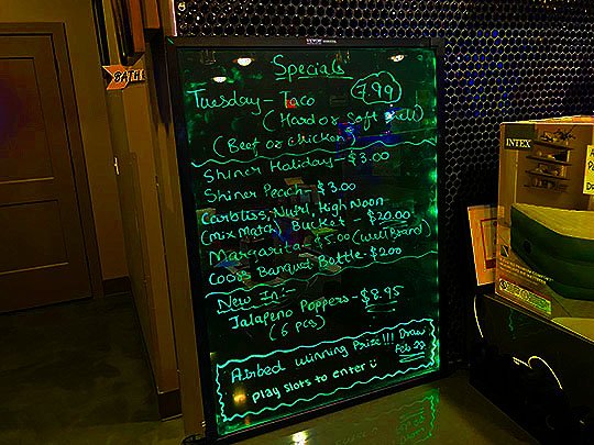 The specials of the day and evening are all listed here. Hmm…I see tacos at the top of the list…keep on scrolling to see if I chose to order those this evening!