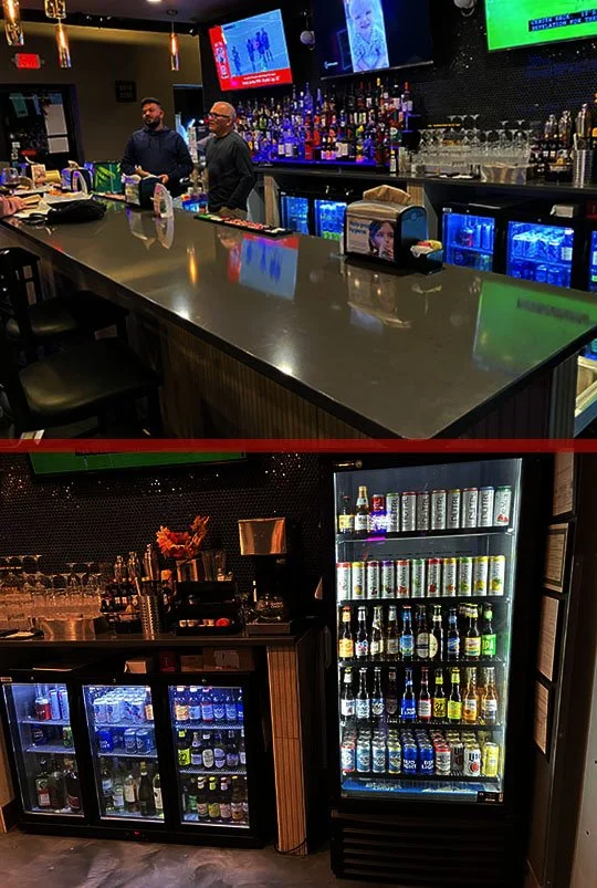 And a shot from the other end of the bar. As you can see from the coolers behind the bar, they are very well stocked in here!