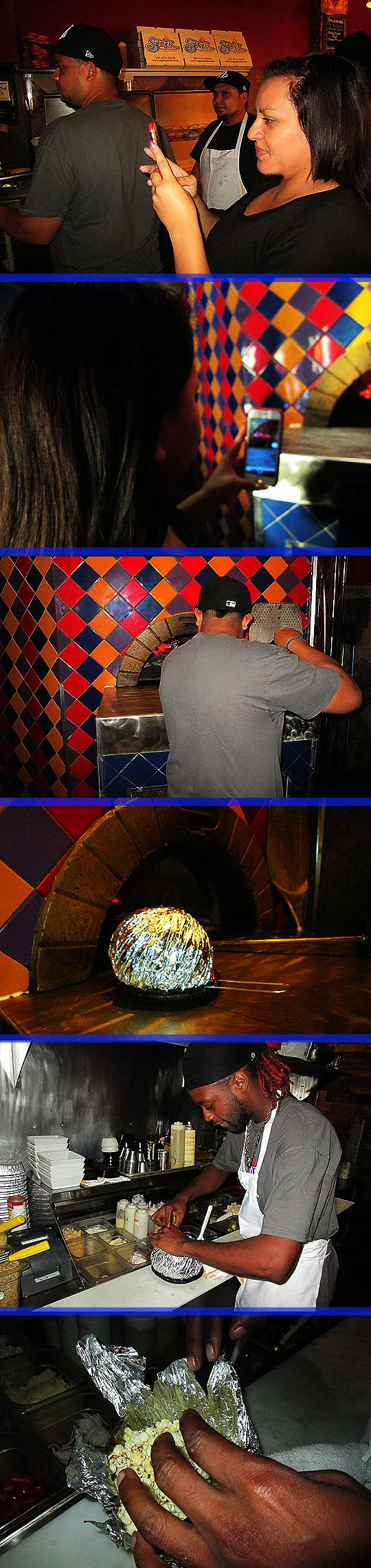 There’s the massive wood-burning Sugar oven and Mario, JoJo and Pancho all agreed to help with the cooking of the Jiffy Pop and I for one am really excited about all of this! Mario and JoJo peeled off the outside cardboard and JoJo slid it into the oven and there it is. The oven is currently running at over 500 degrees! I’m anxious to see how it cooks up this tin of Jiffy Pop.