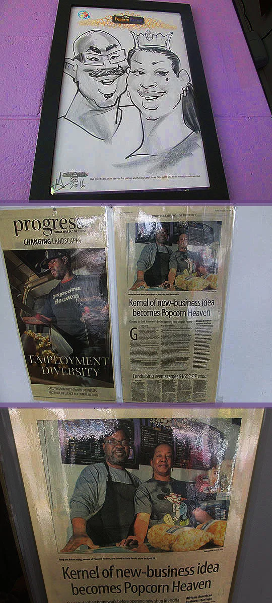 Check out the sign on the door, they were voted the “Best of the Best” from the Journal Star Readers Choice Awards. Very impressive! There’s JoAnn, who owns Popcorn Heaven, with her husband, Greg. She looks busy behind the counter right now, so let’s take a little look around till it slows down in here.